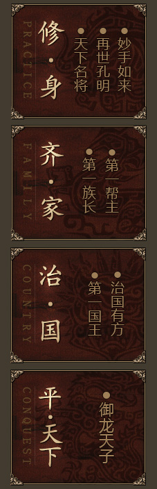 勤政爱民,受本国百姓拥戴,内测期在位时间最长的国王可获此奖项。测试结束时,在位时间最长的国王可得奖励400Q币。