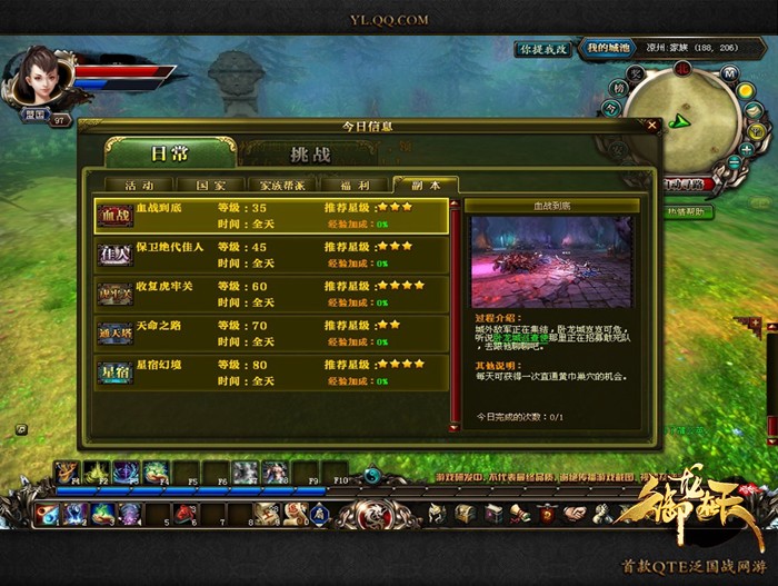 《御龙在天》在咆哮内测阶段依旧采用任务+活动+刷怪的经典模式。其中主线任务基本上贯穿了整个游戏的始末,而在游戏的各个不同等级阶段则穿插了多个带有三国特色背景的支线任务和日常任务,玩家通过完成任务就能获得丰厚的经验。随着级别的升高,玩家们还可以参与答题、国运、国探、温泉、塔防、草船借箭等特色活动,在刷怪之余快速升级。