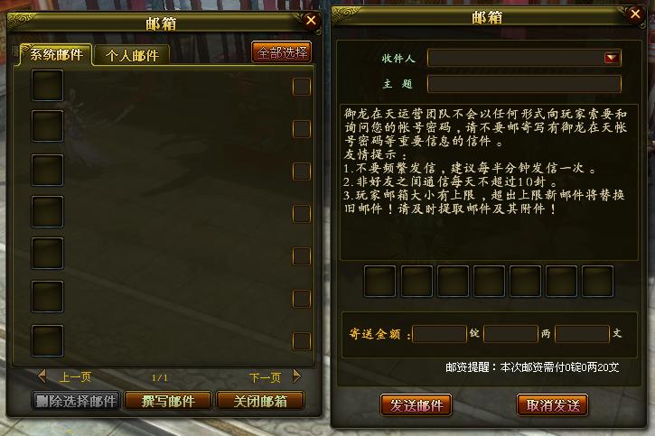 2、请不要使用邮箱邮寄写有御龙在天帐号密码等重要信息的信件。