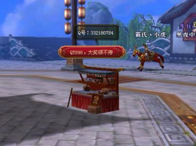 所有玩家在指定时间内,登录各大区卧龙城摆摊区,进行摆摊,可出售任意商品。摊位名称需为“QT898,登录送大礼!”指定宣传语,我们将在指定时间段的指定国家随机抽取20位符合要求的幸运玩家,发放奖励。