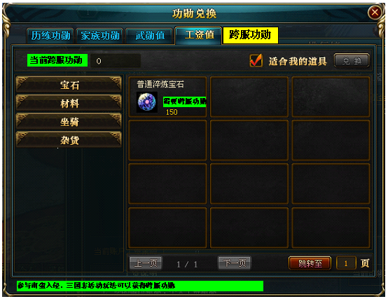 i. 跨服功勋与工资、武勋、家族功勋等一样可以用来兑换道具。