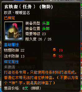 对了,我还做了一个支线任务,有了人生中第一件签名的装备,嘿嘿。