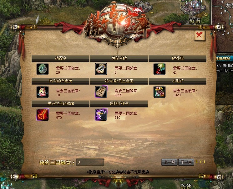 勋章宝库第一期奖励中,还有称号、阿斗的布老虎、小毛驴等道具。奖励并不是一成不变的,勋章商城会不定期更新三国志奖励,玩家可以积累勋章直到你心仪的奖品上架。