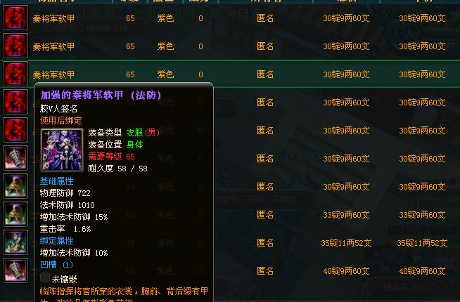 还有很多 我就不截图了。正常防具价钱是普通40D+ 加强60-90D左右。今天突然多了这么多。新区啊 看他这价?正常吗?估计都是一个人的东西