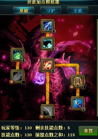 又是一个可以点满群攻单攻的职业,90技能只点1级,基本用不到的技能,伤害没有单攻高,虽然有减防效果,但是只有4秒,持续时间太短了。夜叉1级足以只是需要他的减速效果。没有100级的点不了夜叉的点1级基础系追心.