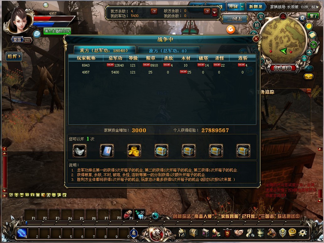 每次对战时间为45分钟,在45分钟内,率先推倒敌军大本营的家族获得胜利。如果在45分钟内,双方均未能击毁对方大本营,则累计军功较高的一方获胜。