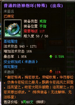 第一次运气不好,开了个**戒指,但我是物攻啊,哎,认命吧!