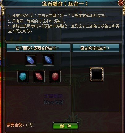(2).宝石的融合:宝石融合是要在宝石商人处完成的,有两个选项,一个是二合一,一个是五合一