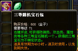 流浪商人处新增三等随机宝石礼包,打开随机获得三等宝石一颗