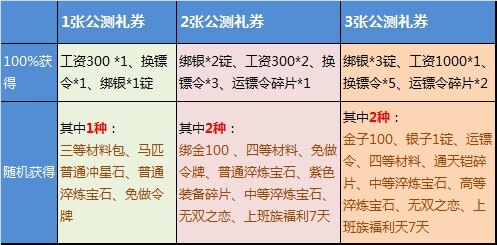 3)公测券奖励内容如下:
