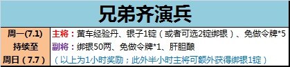 每天19:30-21:30期间,邀请两位好友作为先锋加入演兵,共同在线时间满足条件后都可获得丰厚奖励!