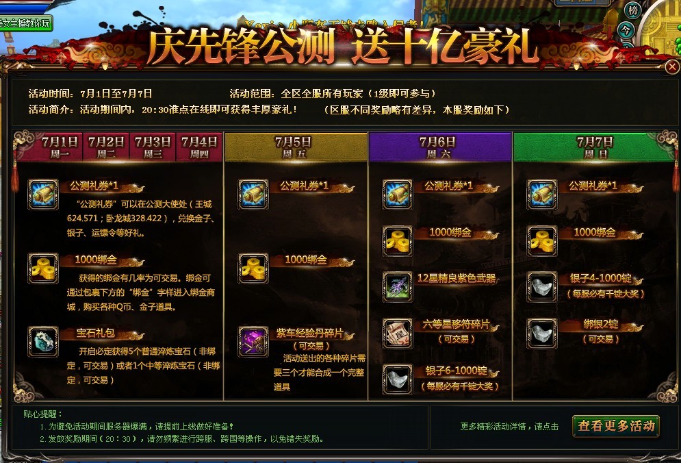 6月28日之前开放大区保底6-10锭银子,6跃28日之后开放大区保底3-5锭银子。