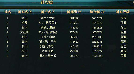 首先,发个截图让大家看看目前的霸域名将的国力的情况。这个是目前整个霸域名将的国力截图。