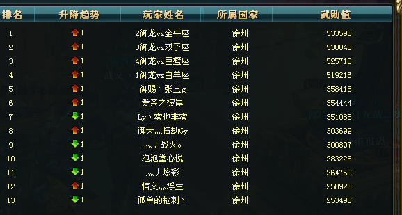 见过工作室的号刷武勋、刷护国上榜的,但是你见过武勋榜全部是工作室号的吗!!这御龙工作室碉堡了!