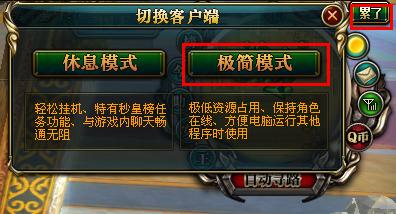 开启极简客户端方法:点击界面右上角我累了,选择“极简客户端”。