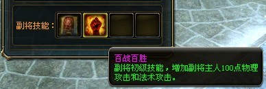 副将拥有个性化的技能,副将技能将能给主人带来各种丰富的属性加成效果。