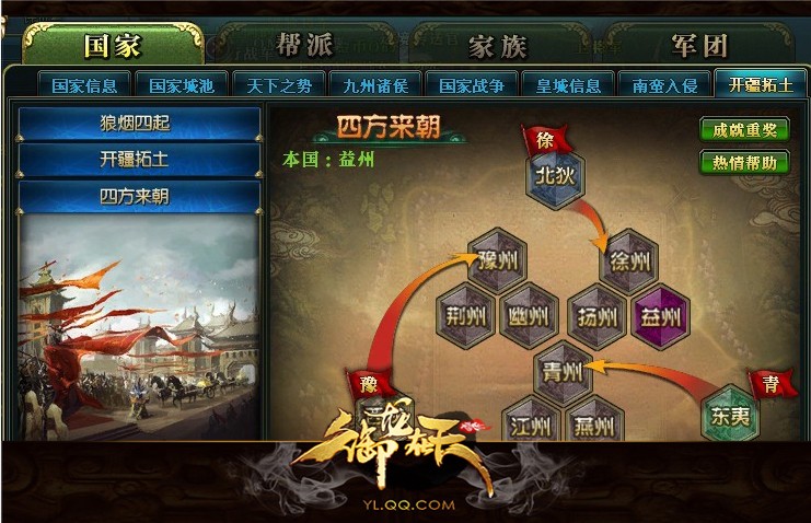 2013年腾讯游戏嘉年华现场(简称:TGC2013),腾讯游戏渠道营销部助理总经理朱峥嵘先生爆出了《御龙在天》2014正式版首测的消息。腾讯第一国战网游《御龙在天》再次曝光全新国战元素,继原有的“立体国战”、“泛国战”后即将推出“全民国战时代”新理念。《御龙在天》2014正式版在游戏内容和战争元素上都有所更新,其中“开疆拓土”新玩法的推广尤为引人瞩目。“开疆拓土”分三部分,分别为“狼烟四起”、“开疆拓土”和“四方来朝”,今天我们就来一起体验最后一步“四方来朝”,感受别样的国战激情。