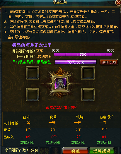 进阶突破,记得之前有拓印的玩法,不少玩家都利用拓印,将自己的武器或者装备砸到1星或者2星弄到了突破,因为这样省不少钱。而官方在得知这样的办法后也是立马修改了拓印玩法,让不少玩家跌了一下坑,后续很多人又选择干脆收精良极品紫,然后在没有星的时候进阶突破,再将星砸上去,而官方知道后,又改进了进阶的规则。其中不少苦水真的是只有自己知道。