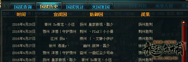 《御龙在天》里几乎每天都有国战发生,而在国战中能够做到四点齐爆的应该不多,因此四点齐爆带来的胜利希望也很大。但在4月28日,【倾城名将】青州与徐州、扬州之间的国战,虽然四点齐爆亦战败。