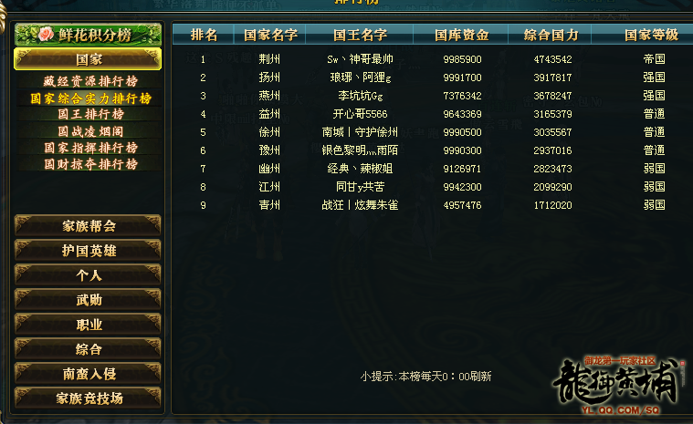 自从【世外桃源】服务器开服以来,荆州便一直雄踞洛阳皇城,傲视天下群雄,在古时候的中国,天子象征着无限的权利,而诸侯国只能无条件的服从。而《御龙在天》中的皇帝,也有其无上的权利,在双线十三区等服务器中,灭掉其它国家的基本条件便是占有洛阳城,这足让洛阳成为所有诸侯梦寐以求的宝地。