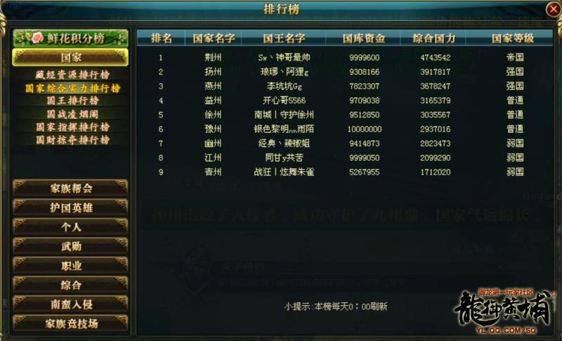 作为绿色服,本服的强国不光有荣耀,更有战争基金的奖励。从目前来看,荆州获得奖金的可能性非常大,不知道其他国家中是否能杀出黑马,逆转目前的国力榜呢?