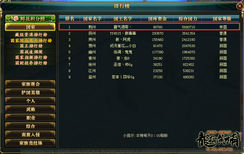 目前来看荆州的国家综合实力还是很高的,不过正常的国力可能还没有刷新出来,毕竟6月4日晚上荆州流失大量玩家,多个给力家族也转国发展,所以后续荆州国力想必会降低。